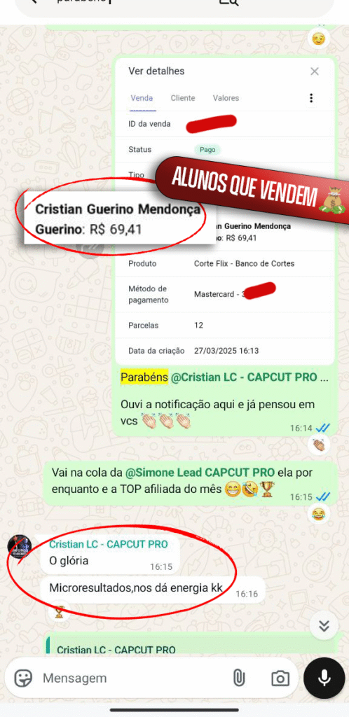 Dessa imersão nasceu meu método: 7 dígitos em vendas, premiações (Kiwify, Hotmart, Cakto, Doppus), +R$ 400 mil apenas com cortes do Pablo Marçal; ficamos conhecidos como “Os Meninos dos Cortes”. No total, ultrapassei R$ 1.000.000,00 e construí 10+ contas de sucesso com milhares e milhares de seguidores no Instagram, TikTok e YouTube — sem precisar aparecer.